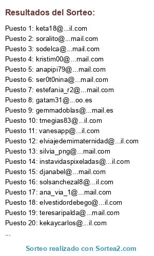 Lista de participantes: @djanabel, @alba.sentis, @tmegias83, @vanesapp, @ana_via_1, @elvestidordebego, @kekaycarlos, @gatam31, @ma_josedelmonte, @alfaglobulina, @ser0t0nina, @iralsur, @uncuentollamadodaniella, @embiz1976, @chusi0_20, @anakp83, @teresaripalda, @silvia_png, @lorecancias, @sodelca, @soralito, @kekill88, @manzano_esther, @eliapapaver, @instavidaspixeladas, @taniamunozsanchez, @anusky141182, @estefania_r2, @gemmadoblas, @evacus, @maricarmen, @martita_brujiya, @ruthhonrubia, @sara.calderon.m, @legna206, @anapipi79, @begoperezsan, @nohersan, @tobalita10, @solsanchezal8, @ainarademena, @bilbamg, @elviajedemimaternidad, @fatima.sevilla, @rosanacumi, @lauraferretl, @kristim00, @siryn31, @evanoja, @belenchustris, @jmayorben, @keta18, @aslavm911.