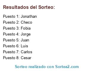 Lista de participantes: Jorge, Carlos, Cesar, Checo, Fobia, Jonathan, Juan, Luis.