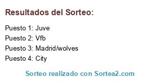 Lista de participantes: City, Juve, Vfb, Madrid/wolves.