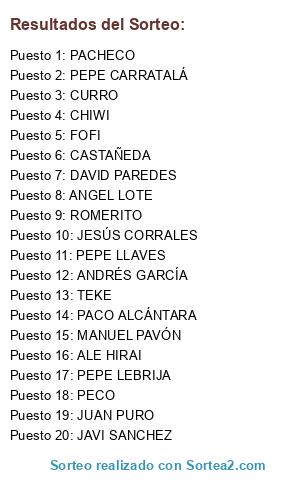 Lista de participantes: ROMERITO, MANUEL PAVÓN, PACHECO, PECO, CURRO, PEPE LLAVES, JUAN PURO, ALE HIRAI, PACO ALCÁNTARA, TEKE, PEPE CARRATALÁ, JAVI SANCHEZ, ANGEL LOTE, PEPE LEBRIJA, ANDRÉS GARCÍA, JESÚS CORRALES, DAVID PAREDES, CASTAÑEDA, FOFI, CHIWI.