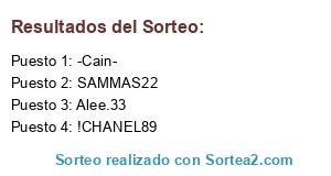 Lista de participantes: !CHANEL89 (3), -Cain- (12), Beto51515 (1), Alee.33 (2), mati6525432 (1), DB_Cooper (3), JuiceN (2), SAMMAS22 (3), Marmor09 (4).