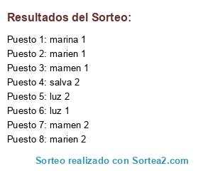 Lista de participantes: mamen 1, mamen 2, salva 1, salva 2, ana 1, ana 2, luz 1, luz 2, marien 1, marien 2, marina 1, marina 2.