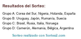 Lista de participantes: Alemania, Holanda, Rumanía, Suecia, Brasil, Japón, Bélgica, Argentina, Italia, España, Rusia, Nigeria, Corea del Sur, Uruguay, Noruega, Camerún.