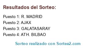 Lista de participantes: GALATASARAY, R. MADRID, ATH. BILBAO, AJAX.