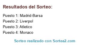 Lista de participantes: Monaco, Atletico, Liverpol, Madrid-Barsa.