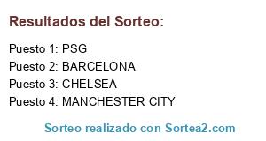 Lista de participantes: PSG, CHELSEA, BARCELONA, MANCHESTER CITY.