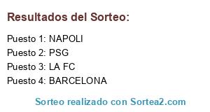 Lista de participantes: BARCELONA, LA FC, PSG, NAPOLI.