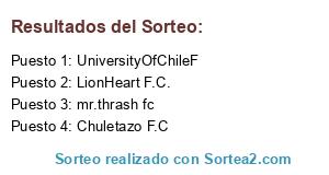 Lista de participantes: LionHeart F.C., Chuletazo F.C, UniversityOfChileF, mr.thrash fc.
