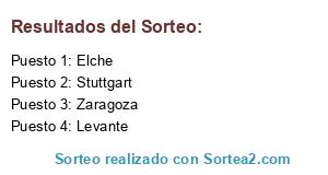 Lista de participantes: Elche, Zaragoza, Stuttgart, Levante.