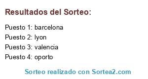 Lista de participantes: valencia, oporto, barcelona, lyon.