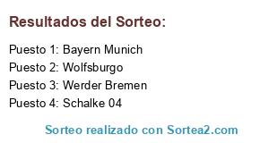 Lista de participantes: Wolfsburgo, Werder Bremen, Schalke 04, Bayern Munich.