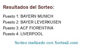 Lista de participantes: BAYER LEVERKUSEN, LIVERPOOL, ACF FIORENTINA, BAYERN MUNICH.