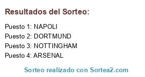Lista de participantes: ARSENAL, DORTMUND, NOTTINGHAM, NAPOLI.