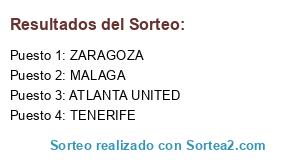 Lista de participantes: ATLANTA UNITED, MALAGA, TENERIFE, ZARAGOZA.