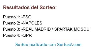Lista de participantes: -PSG, -NAPOLES, -QPR, -REAL MADRID / SPARTAK MOSCÚ.
