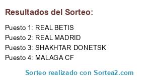 Lista de participantes: REAL BETIS, REAL MADRID, MALAGA CF, SHAKHTAR DONETSK.