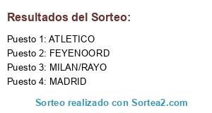 Lista de participantes: MILAN/RAYO, ATLETICO, FEYENOORD, MADRID.
