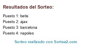 Lista de participantes: barcelona, betis, napoles, ajax.