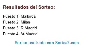 Lista de participantes: Milán, At.Madrid, Mallorca, R.Madrid.