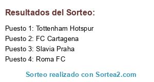 Lista de participantes: FC Cartagena, Roma FC, Slavia Praha, Tottenham Hotspur.