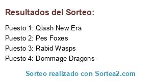 Lista de participantes: Rabid Wasps, Dommage Dragons, Qlash New Era, Pes Foxes.