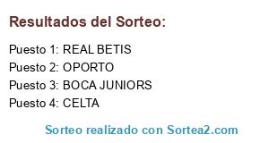 Lista de participantes: BOCA JUNIORS, REAL BETIS, OPORTO, CELTA.