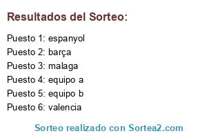 Lista de participantes: barça, valencia, espanyol, malaga, equipo a, equipo b.