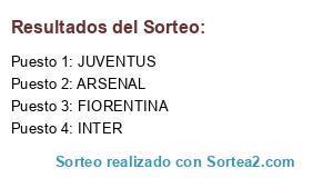 Lista de participantes: ARSENAL, FIORENTINA, INTER, JUVENTUS.