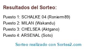 Lista de participantes: MILAN (Wakandu), ARSENAL (Soto), SCHALKE 04 (Ronierm89), CHELSEA (Aktgano).