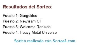 Lista de participantes: Heavy Metal Universe, Gargolitos, Newteam CF, Welcome Ronaldo.
