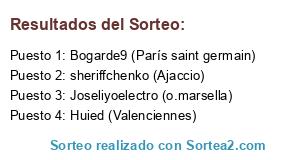 Lista de participantes: Huied (Valenciennes), Joseliyoelectro (o.marsella), Bogarde9 (París saint germain), sheriffchenko (Ajaccio).
