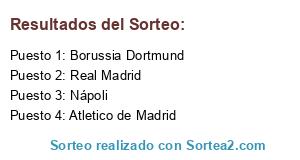 Lista de participantes: Borussia Dortmund, Real Madrid, Atletico de Madrid, Nápoli.