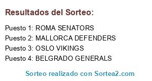 Lista de participantes: LISBOA EAGLES, BARCELONA DRAGONS, AMSTERDAM VIPERS, OSLO VIKINGS.