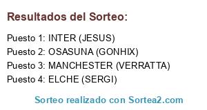 Lista de participantes: MANCHESTER (VERRATTA), INTER (JESUS), ELCHE (SERGI), OSASUNA (GONHIX).
