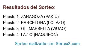 Lista de participantes: ZARAGOZA (PAKIU), OL. MARSELLA (WUAO), BARCELONA (LOLAZO), LAZIO (NAQUIFON).