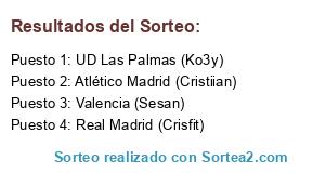 Lista de participantes: Valencia (Sesan), Real Madrid (Crisfit), Atlético Madrid (Cristiian), UD Las Palmas (Ko3y).