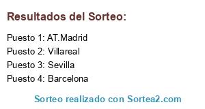 Lista de participantes: AT.Madrid, Villareal, Barcelona, Sevilla.