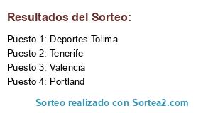 Lista de participantes: Deportes Tolima, Tenerife, Valencia, Portland.