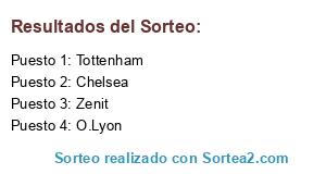 Lista de participantes: O.Lyon, Zenit, Chelsea, Tottenham.