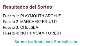 Lista de participantes: CHELSEA, MANCHESTER UTD, NOTHIMGAM FOREST, PLAYMOUTH ARGYLE.