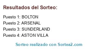 Lista de participantes: BOLTON, ARSENAL, ASTON VILLA, SUNDERLAND.