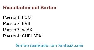 Lista de participantes: CHELSEA, BVB, PSG, AJAX.