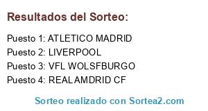 Lista de participantes: ATLETICO MADRID, LIVERPOOL, REAL AMDRID CF, VFL WOLSFBURGO.