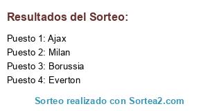 Lista de participantes: Ajax, Milan, Borussia, Everton.