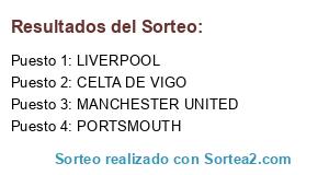 Lista de participantes: MANCHESTER UNITED, LIVERPOOL, PORTSMOUTH, CELTA DE VIGO.