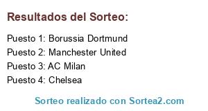 Lista de participantes: Borussia Dortmund, AC Milan, Chelsea, Manchester United.