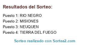 Lista de participantes: MISIONES, NEUQUEN, RIO NEGRO, TIERRA DEL FUEGO.