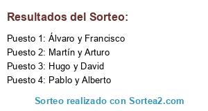 Lista de participantes: Martín y Arturo, Álvaro y Francisco, Hugo y David, Pablo y Alberto.