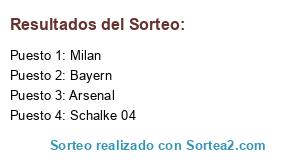 Lista de participantes: Schalke 04, Arsenal, Milan, Bayern.