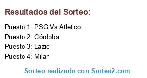 Lista de participantes: Lazio, Milan, Córdoba, PSG Vs Atletico.